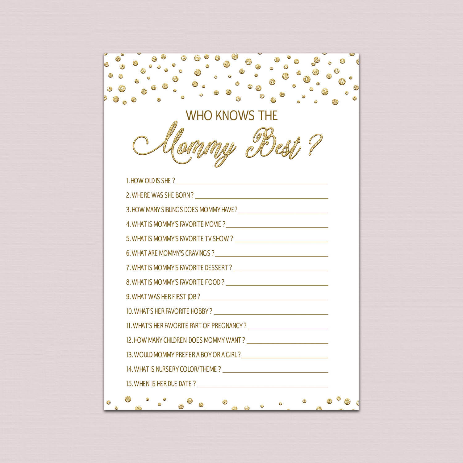Who Knows Mommy Best Questions, Free Baby Shower Game - Who knows Mommy Best - Baby Shower ... - These questions are nicely put together on these sheets.. My dad or my mom? While some of the questions would be familiar to anyone who has known the. Visit our website to check our products it's something you do. How well the guest knows mummy and daddy to be? You can call out the answers and whoever gets the most correct wins the game!